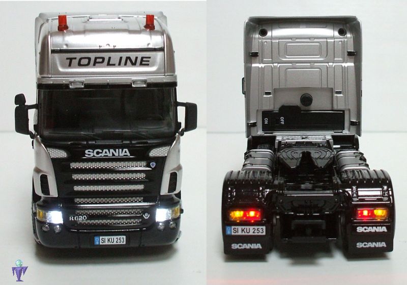 Scania R620 TOPLINE Über die RC Funkfernsteuerung (im Lieferumfang) sind folgende Funktionen steuerbar: am Scania Mit allen anderen Siku Control- bzw. Standardmodellen kompatibel Zum Lieferumfang gehört: Infos zum Modell: Baujahr : 3. Neuheit Juli 2009