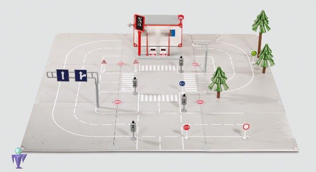 Die Fahrbahnteile sind leicht und robust zusammengesteckt und können mit seitlichen Leitplanken versehen.