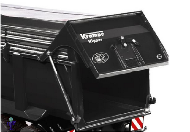 Krampe Big Body 650 - in schwarz mit Reifenspurenmit Bordwanderhöhung und Schrägdachplane